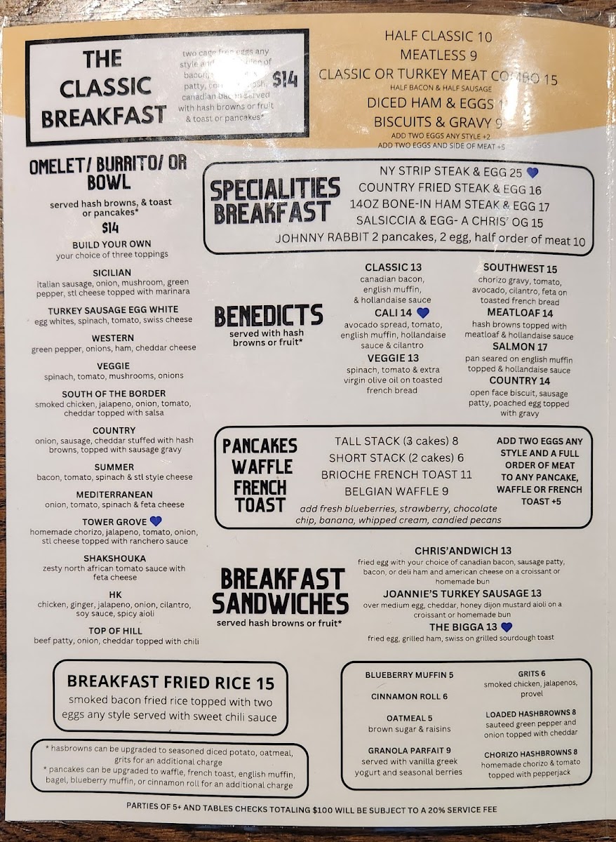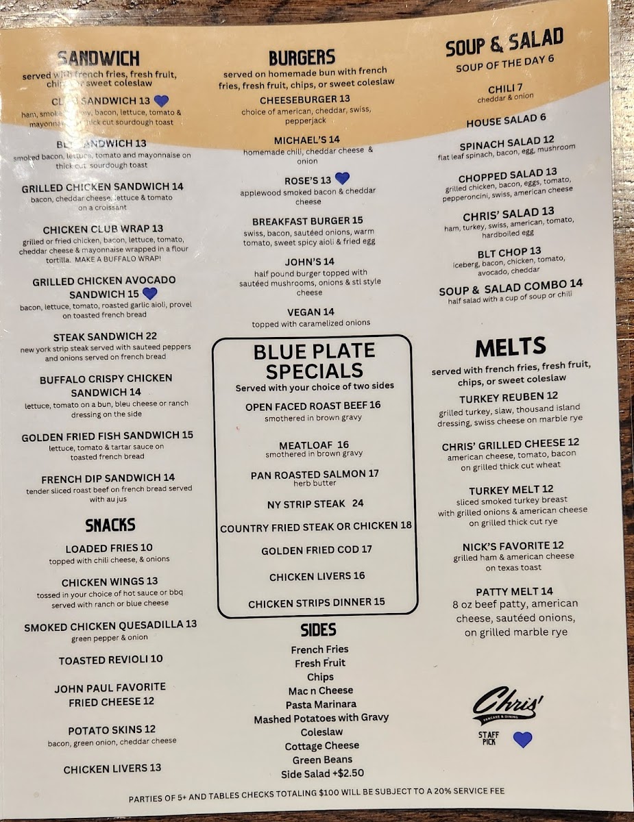 If you're looking for a cozy, delicious spot to enjoy a hearty meal, the Chris' Pancake & Dining Menu is just the place to be. Located at 5980 Southwest Ave, St. Louis, MO, this charming diner offers a variety of dishes that bring comfort and flavor to the table. Whether you're craving a stack of golden, fluffy pancakes or a savory breakfast, you'll find something to satisfy every craving. From classic eggs and bacon to mouthwatering omelets and freshly brewed coffee, Chris' Pancake & Dining knows how to make your meal feel special.